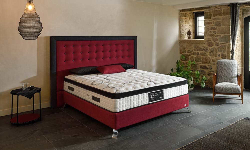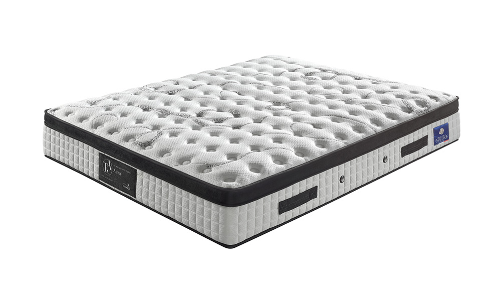 H.32 cm. Plateau Cachemire, Soie & Extra Souple. Ame ressorts ensachés (140 x 190 cm 1346 Ressorts) + Micropocket + Flo Fom + Pulse Medium (mousse aux propriétés uniques d’allègement de la pression) + Mousse Haute-Résilience. Garantie 10 ans.