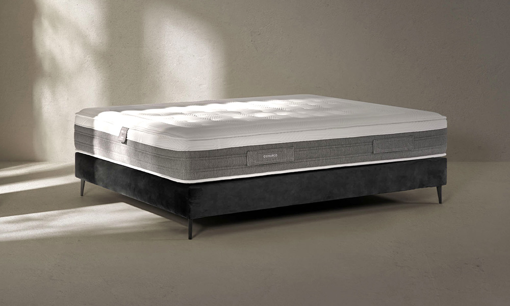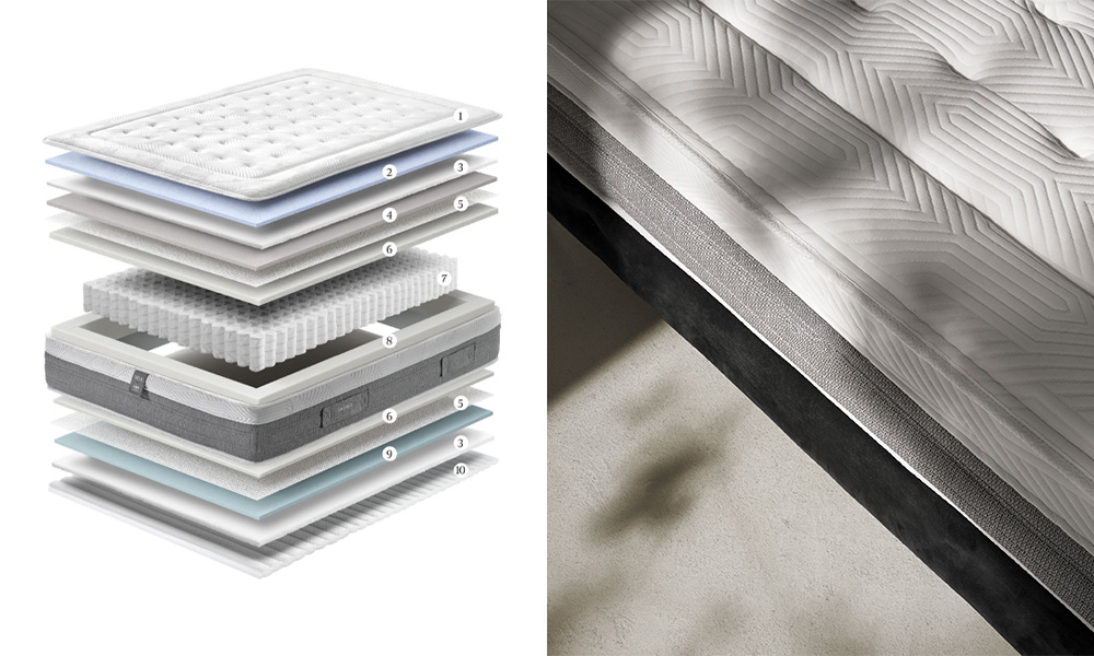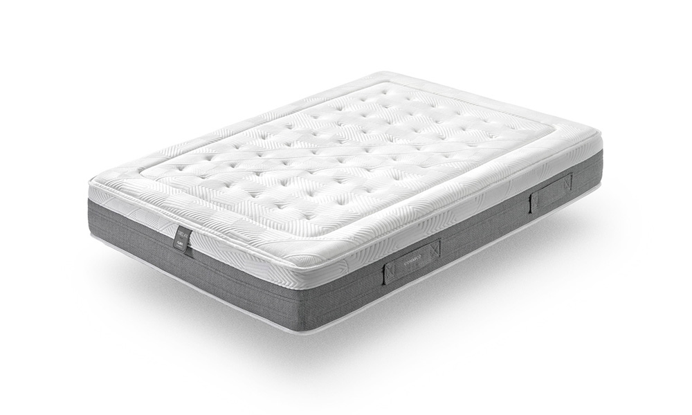 H.26 cm. Soutien ferme. Ressorts Springsac. Mousse à mémoire de forme. Face hiver mousse Supersoft, mousse Viscotitanium. Face été revêtement Aeroflex 3D ice. Anti bactérien. Anti acariens.